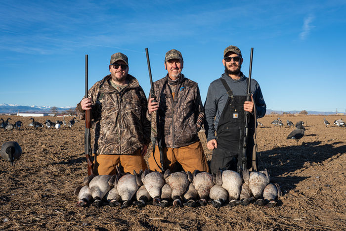 Kahler Outdoors offers fully guided Canada goose hunts in Northern Colorado. These hunts take place on private ground in the middle of the heart of our wintering populations out of comfortable pit blinds or above ground A-frame style blinds. We provide prime location, well seasoned guide(s), decoys, comfortable seating and professional calling. All hunts are guaranteed at least morning and evening prime flight times, or until limit is reached. Clients are expected to help with morning decoy setting and pickup when the hunt is over. All of our goose hunts target prime decoying birds over the decoys. We pride ourselves on putting on the "big show" when the big numbers of lesser Canadas are in town. Come enjoy Colorado's finest goose hunting experience.